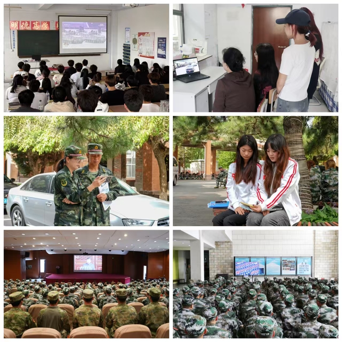 在会议室、在报告厅、在宿舍......师生们神情专注,认真聆听习近平总书记的重要讲话,深刻领会中国人民抗日战争暨世界反法西斯战争胜利的重大历史意义和现实意义。当看到受阅官兵威武雄壮的英姿、整齐划一步伐和新型先进的武器装备,师生们对新时代国防和军队建设成就充满振奋和自豪,对实现中华民族伟大复兴充满信心。