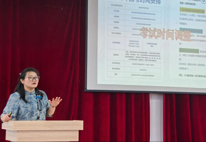 讲座伊始,李音老师对考研考公的规划展开了详细的解说,讲述了考研考公的政策与报考流程,从标明条件的精准解读,到各环节的注意事项,确保大家在报考过程中不遗漏任何关键信息,迈出考研考公的第一步。同时分析了今年的吉林省省考的变化比如选调生数量持续减少、公检法机关招录岗位持续增长等多种变化。为让学生们在考公的道路上更为通畅李音老师提出宝贵的建议,包括如何制定合理的学习计划、如何调整报考心态、如何对考试中突各种突发情况等。