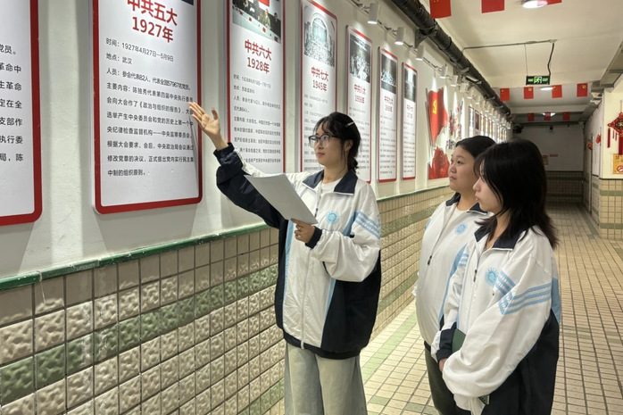 唐春宇同学以细致专业的态度,围绕文化长廊的党史展陈脉络、展品背后的革命故事以及红色精神的当代价值这三个方面展开讲解,大家深刻认识到,应当将从红色展品中感悟的初心力量,转化为日常学习的动力与服务同学的行动,在知行合一中锤炼党性修养,传承党的红色基因。