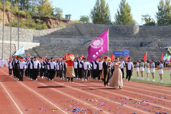 在悦耳动听的旋律与热情洋溢的解说声中,国旗方队、校旗方队、校训方队、花束方队、刀旗方队、彩旗方队、教工联合方队、各学院代表队依次步入运动场。他们精神抖擞、意气风发,整齐的步伐与坚定的目光,展现了昂扬向上的精神风貌与奋发有为的青春力量。