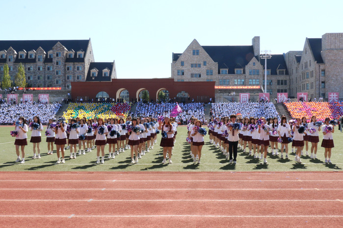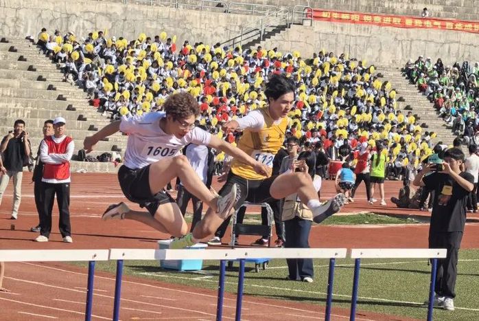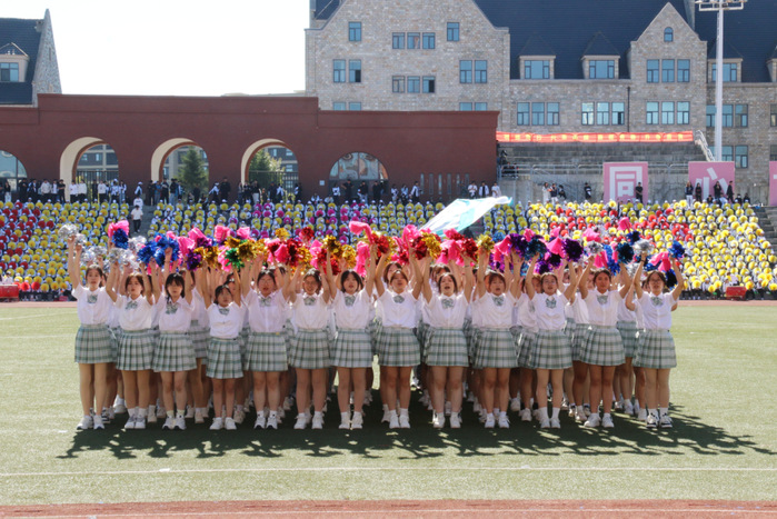看台上,师生们情绪激昂,呐喊助威声此起彼伏。各学院啦啦队用跃动的身影和响彻全场的口号引爆热情,她们犹如跳动的音符,使热烈的气氛持续升温,感染着在场每一个人。