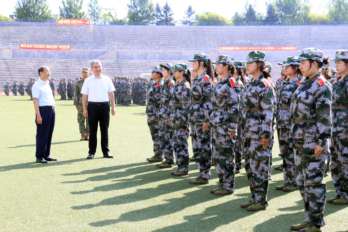 在田径场中央的分列式训练区域,任玉珊勉励新生:“军训是对体能与意志的双重锻炼,队列训练更是大学生涯的基石,希望大家将坚持与严谨的态度融入专业学习之中。”张冀男从人才培养角度寄语新生:“军训中体现的团队协作精神,希望大家能将其转化为求学道路上的精神财富”。