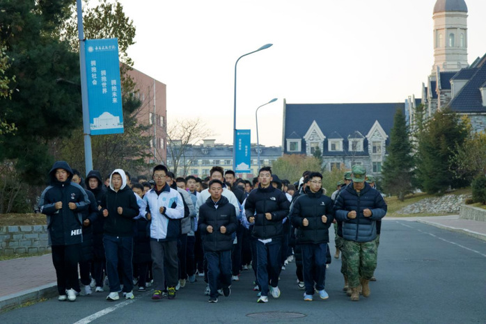 待队列整顿完毕,教官下达“跑步走”的口令,打破了清晨的静谧。学员们步伐整齐一致,沿着预先设定的路线开启晨跑。队伍自始至终保持整齐有序,未有一人掉队,也未有一人偏离阵型。