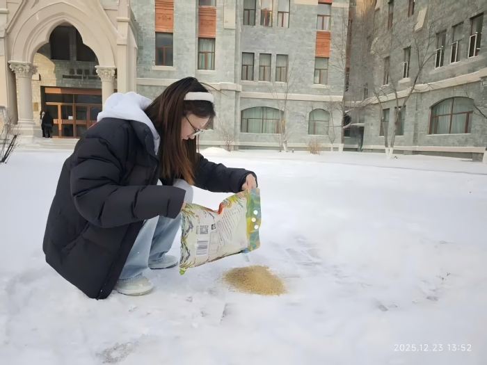 凛冬时节,寒风掠过长春建筑学院的校园,树梢上的叶片早已落尽,往日里在枝头跳跃的小鸟,也瑟缩着寻找果腹的食物。当我们裹紧棉衣感叹冬日寒冷时,可曾留意到这些小生灵的窘迫?长春建筑学院心理联合会特发起“冬日暖鸟”喂鸟主题活动,邀你以一粒粟米、一份善意,在投喂小鸟的过程中,邂逅冬日的治愈与温暖。